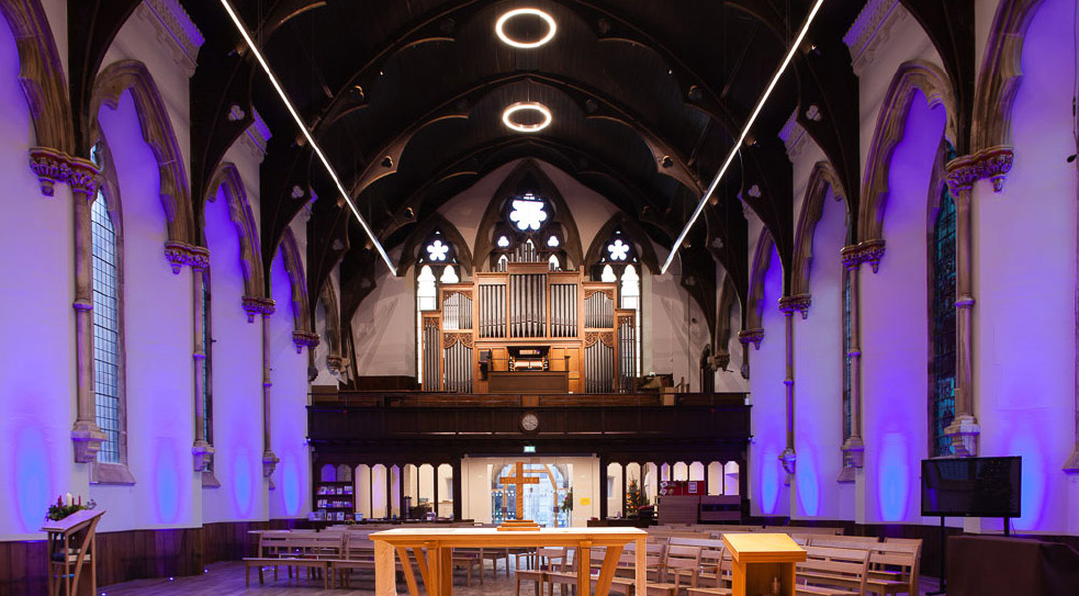 The refurbishment of Victoria Church was an exciting project to take on, their brief was to illuminate the Sanctuary and Narthex with the reference to the altar, Rose Window and organ, as well as providing full control via iPads to highlight the rest of the Victorian architecture.