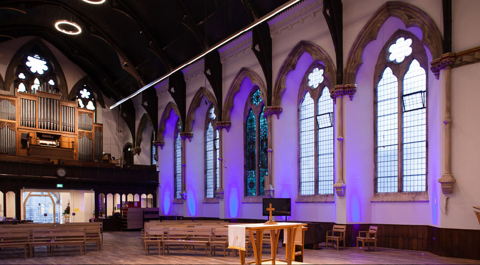 Following this refurbishment, Victoria Methodist Church now has a flexible system which can be re-programmed to suit any scene, plus they have full control of the heating system either via the iPads or remotely via an app.