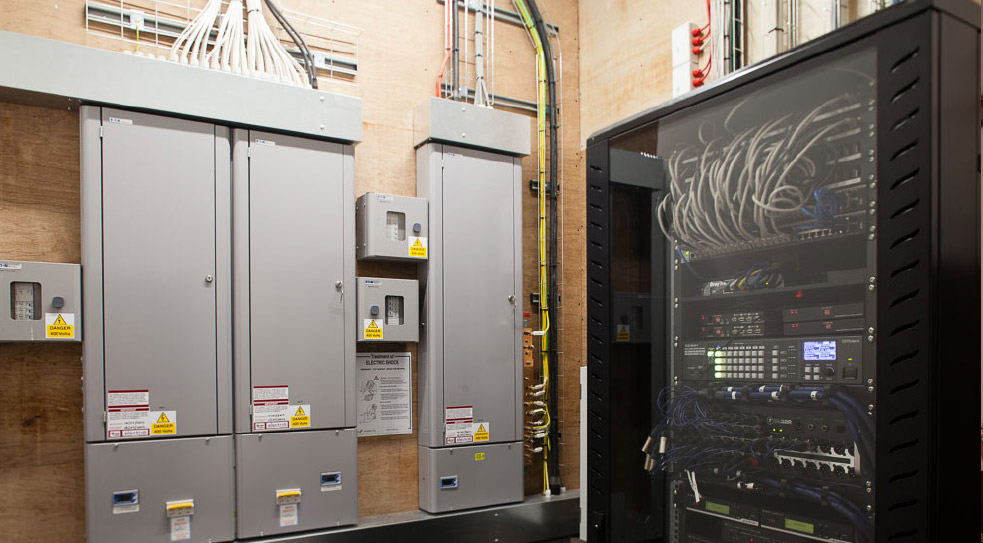 During the installation we also updated the main distribution boards within the basement area, and added controls for the AV and IT network. Within the room a KNX control panel was installed to allow all the lighting, whether it was DALI, 1-10V or DMX to be interfaced with the AV & Fire Alarm system.